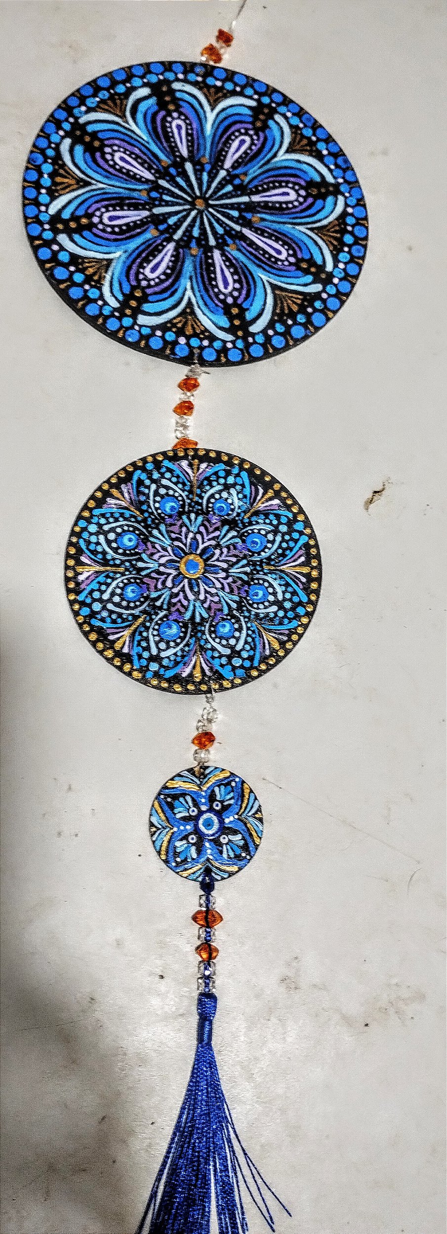 Mobíle com 6 mandalas pintadas á mão, trabalhando a energia da alegria e do equilíbrio!