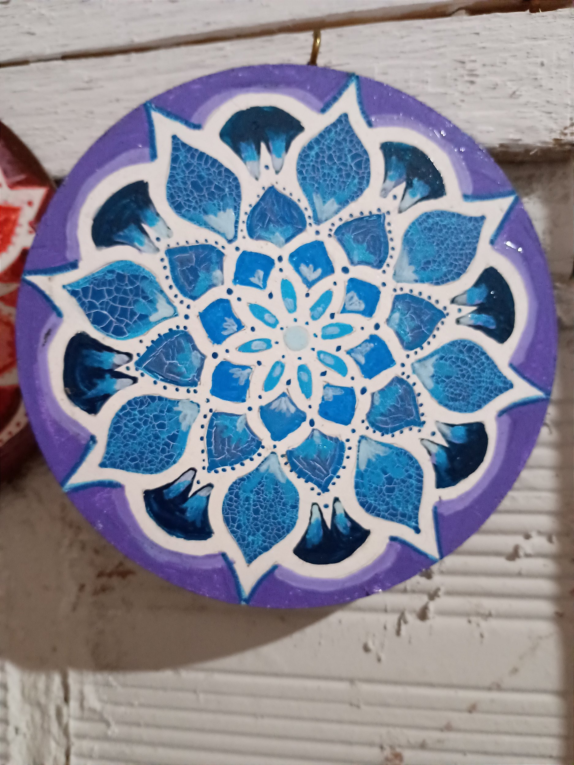 Mandala de 10 cm em mdf , trabalhando as cores da sabedoria e do autconhecimento , expandindo a mente e levando a alma.