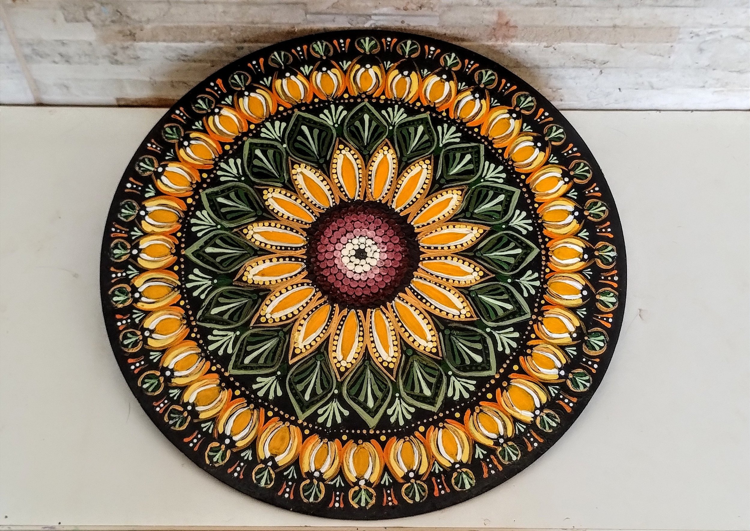 PINTADA Á MÃO EM MDF COM 35 CM DE DIÂMETRO