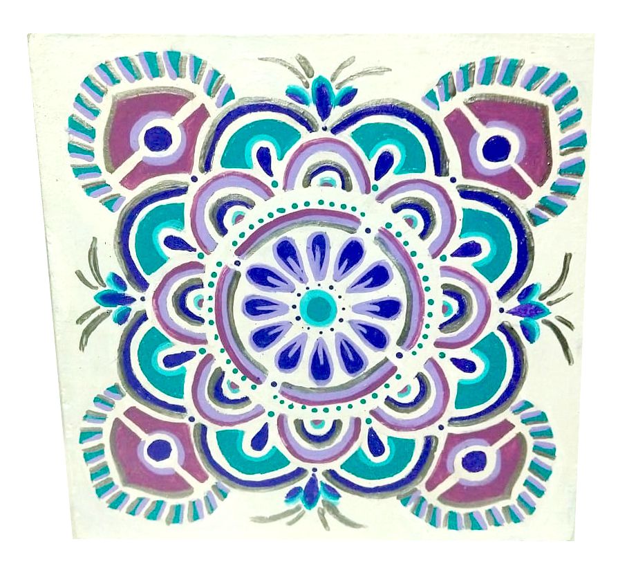 Mandala pintada em madeira, medindo 20 x 20 cm. Auxilia na concentração e equilíbrio .