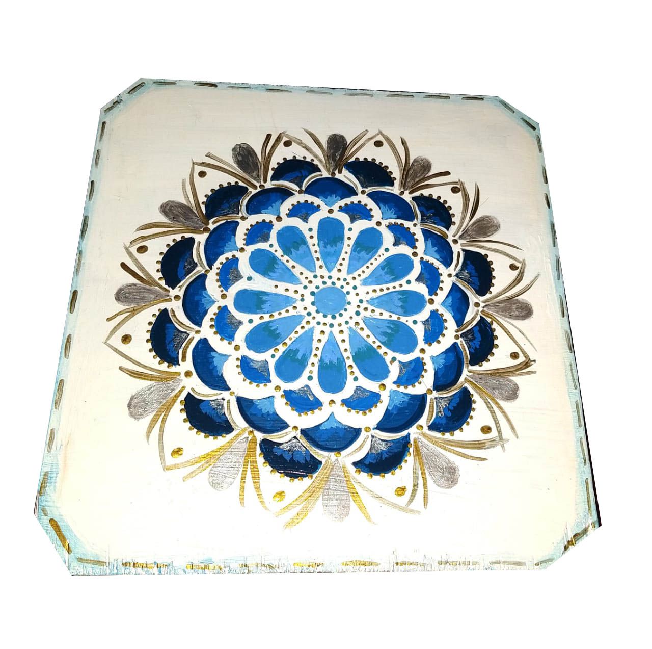 MANDALA PINTADA EM MADEIRA , MEDINDO 19 X 19 CM . EXCELENTE PARA MEDITAÇÃO E BUSCA DO CONHECIMENTO!
