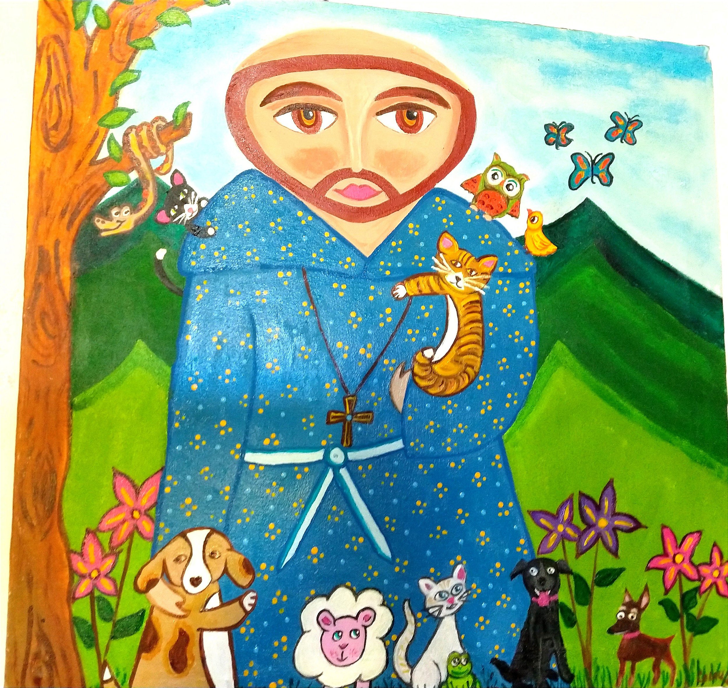 PINTURA EM TELA MEDINDO 30CM POR 20 CM, RETRATANDO SÃO FRANCISCO DE ASSIS.
